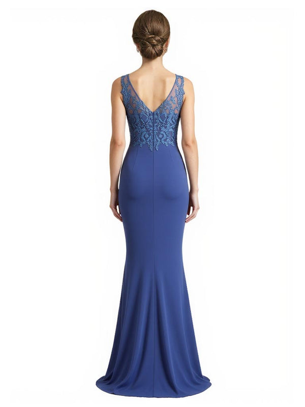 Elegant Sleeveless Lace Bodice Crepe Mermaid Young Mother of The Bride Dresses - ChicSew