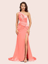 Sexy Side Slit Mermaid One Shoulder Long Soft Satin Evening Prom Dresses Online - Cetims
