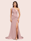 Sexy Side Slit Mermaid One Shoulder Long Soft Satin Evening Prom Dresses Online